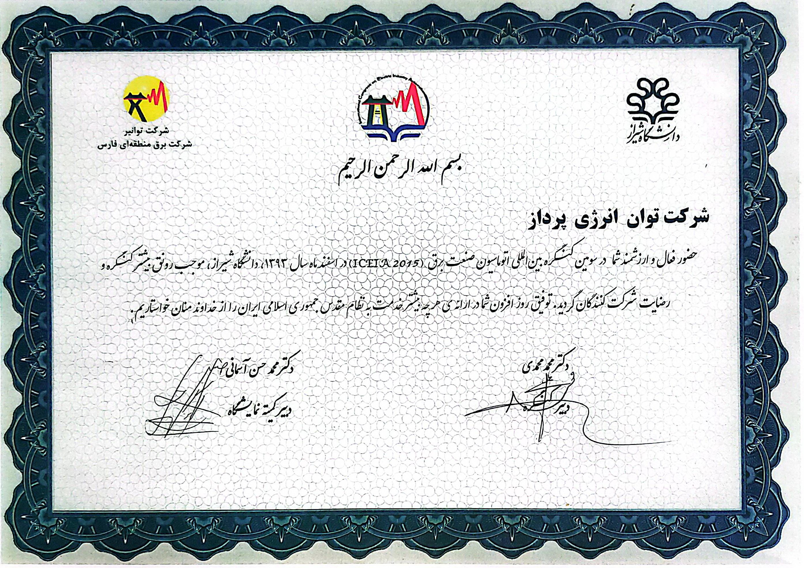 تقدیرنامه یازدهمین کنفرانس بین المللی حفاظت و اتوماسیون در سیستم های قدرت